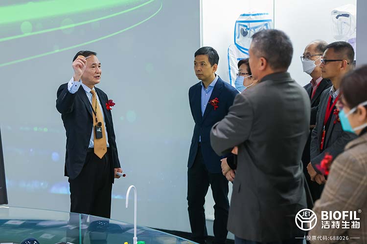 隨后,在潔特生物董事長(zhǎng)袁建華,董事、總經(jīng)理YuanYe James的帶領(lǐng)下,嘉賓們分批參觀潔特產(chǎn)業(yè)園,對(duì)潔特生物企業(yè)展廳、智能制造生產(chǎn)車間、辦公區(qū)、潔特檢測(cè)中心、潔特孵化器樣板間、會(huì)議中心等進(jìn)行了詳細(xì)了解。