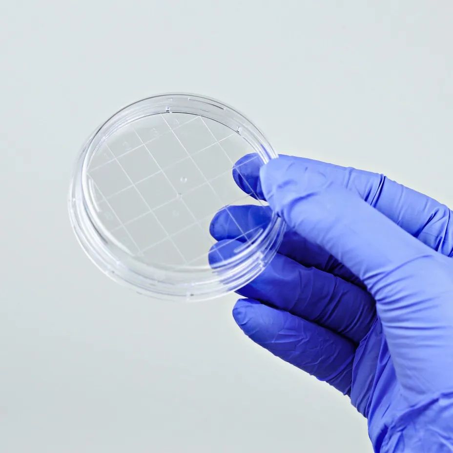 方便菌落計數(shù)與標(biāo)記皿底帶計數(shù)分格(10×10mm)與數(shù)字標(biāo)識,便于菌落計數(shù)與標(biāo)記