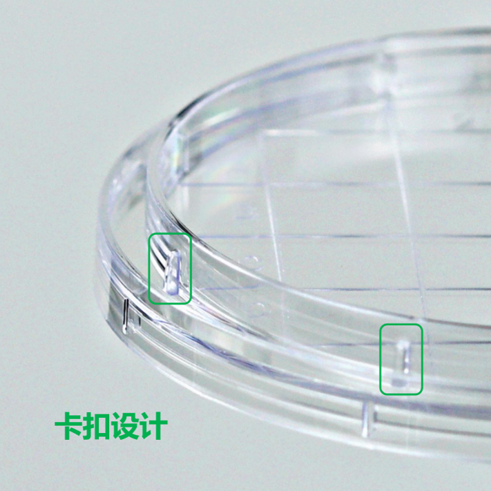 倒置不易脫蓋皿內(nèi)環(huán)卡扣設(shè)計,培養(yǎng)皿與皿蓋緊密度高,防止誤開,倒置不易脫落