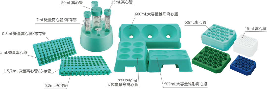 潔特生物離心管架采用優(yōu)質(zhì)聚丙烯(PP)材料制成,不易變形,堅固耐用,反復(fù)凍融及高溫、高壓滅菌后仍能保持良好性能,可重復(fù)使用。系列產(chǎn)品擁有多種規(guī)格,可適配潔特生物離心管、微量離心管、凍存管、PCR管、生物反應(yīng)管及大容量離心瓶,滿足不同實驗場景下的樣品處理需求。