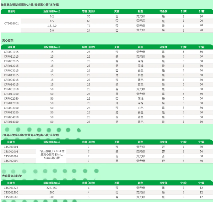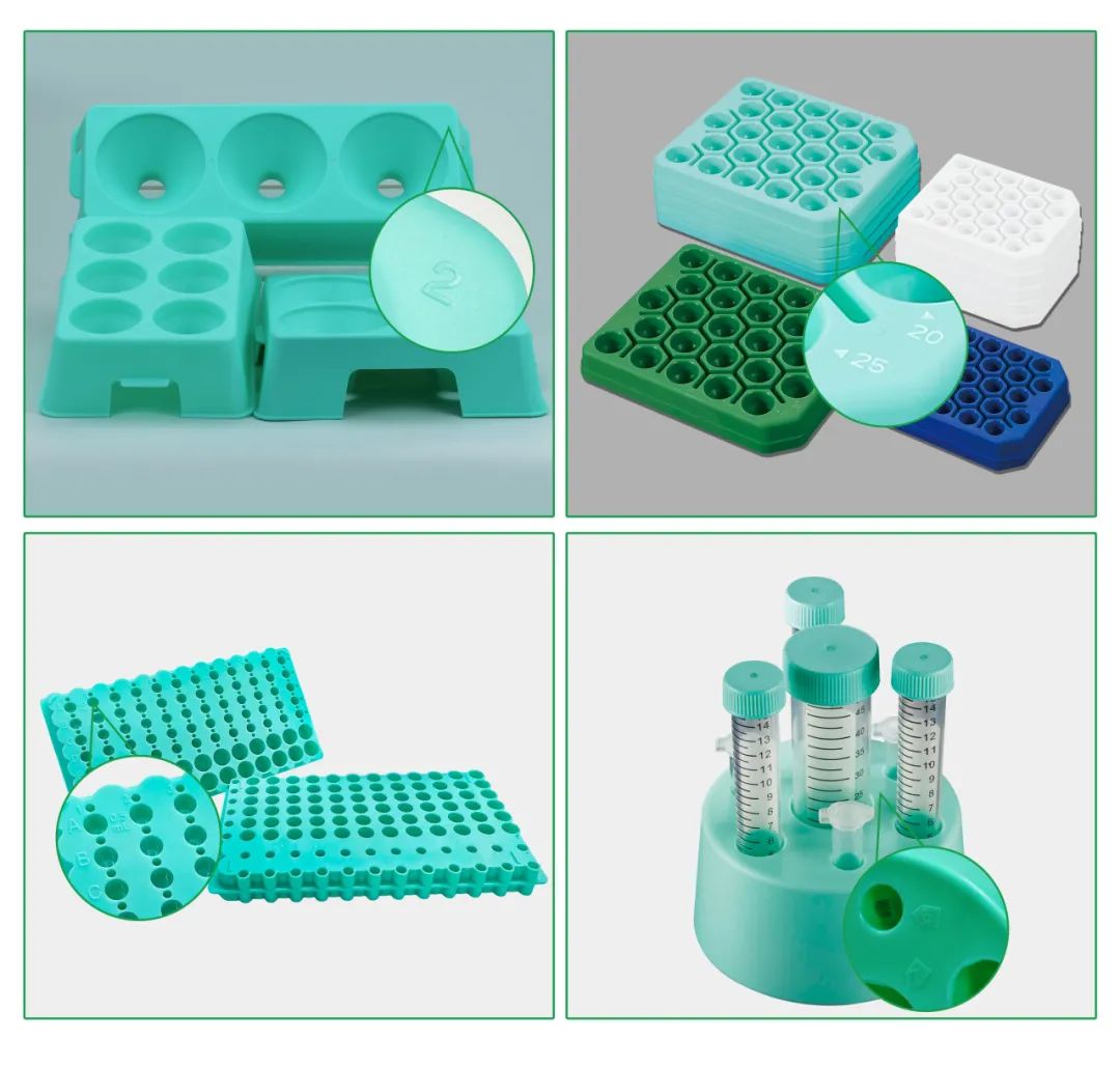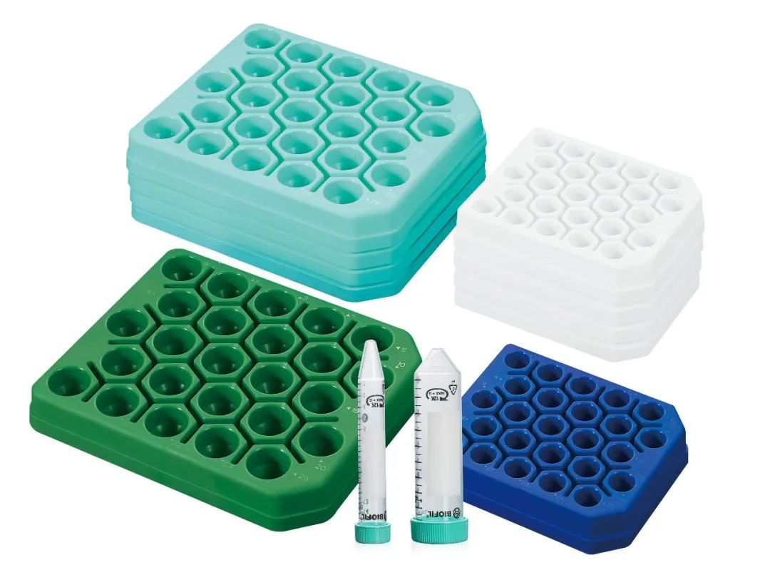 ◆ 15/50mL兩種規(guī)格,均配備25孔位,熒光綠/深綠/藍/白四種顏色可選