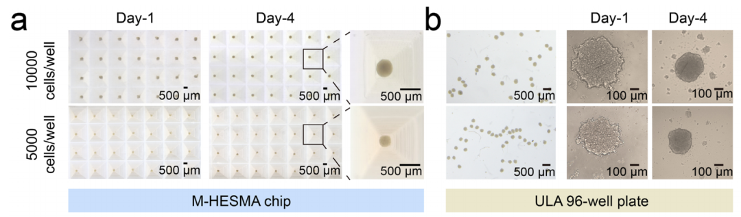 在M-HESMA芯片培養(yǎng)的細(xì)胞球更均一
